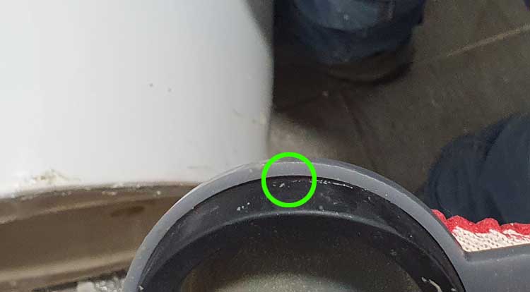 ※ 배관과 벽체 이격거리 미준수로 소변기와 무리한 배관 맞추기 시공이 원인이 된 사례로 배관 옆을 파내고 소변기를 앉혔네요. 옆을 파는 과정에서 화장실 바닥 방수층이 붕괴되고 배관 틈 사이로 누수가 된 것입니다.