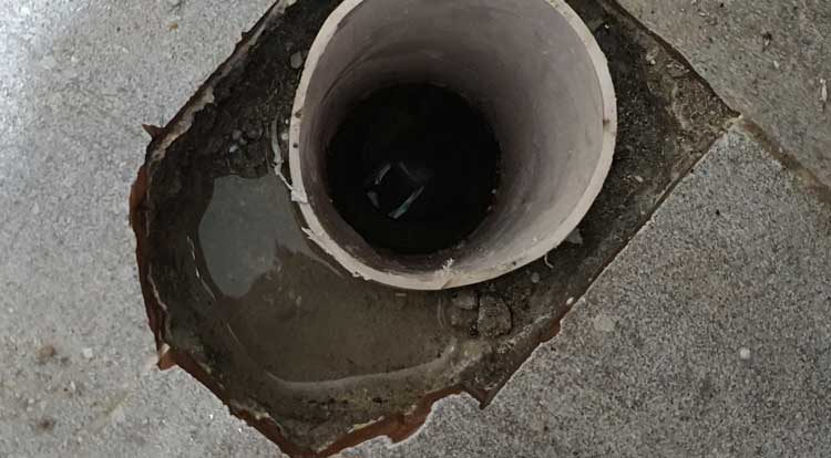 ※ 배관과 벽체 이격거리 미준수로 소변기와 무리한 배관 맞추기 시공이 원인이 된 사례로 배관 옆을 파내고 소변기를 앉혔네요. 옆을 파는 과정에서 화장실 바닥 방수층이 붕괴되고 배관 틈 사이로 누수가 된 것입니다.